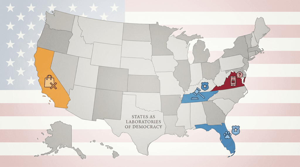 One genuinely positive aspect of these diverse new laws is what they reveal about American federalism. Tennessee can try a domestic violence registry while other states watch the results. Virginia can experiment with social media limits while parents in Texas maintain different approaches. Florida can track animal abusers while other states assess effectiveness.